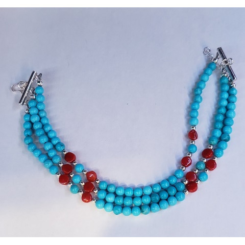 Sterling Silver Blue Magnesite & Coral Bracelet.. This bracelet is adjustable from 7.25 to 8 inches long.. All the Clasp and Spacers are Sterling Silver...