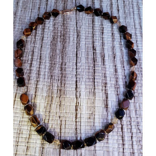 Tiger Eye & Citrine With Gold Filled Spacers & Clasp. The Citrine is 5mm Round Beads & faceted Tiger Eye. This Necklace is 18 inches Long.
