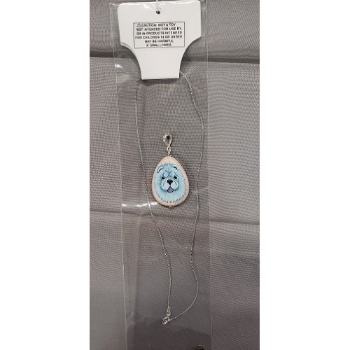Hand Painted Blue Chow Chow on Sterling Porcelain Jasper .. sterling serpentine chain is 18" long