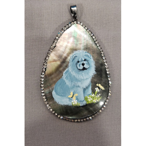 This is a Hand Painted Blue Chow Chow On a Shell Pendant is approx. 2.5 inches long and it is non sterling silver.....